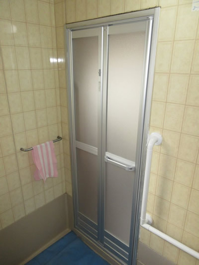 介護保険の住宅改修制度を利用した、浴室ドアから折れ戸への交換についても説明しています。